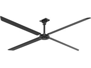羽根径最大7.32m。非常に大きなブレードを持ち、倉庫や工場、物流基地といった、特に広い空間における空気循環と空調効率化を目的に開発された、ハンターのHVLS(High Volume Low Speed)インダストリアル・シリーズ。